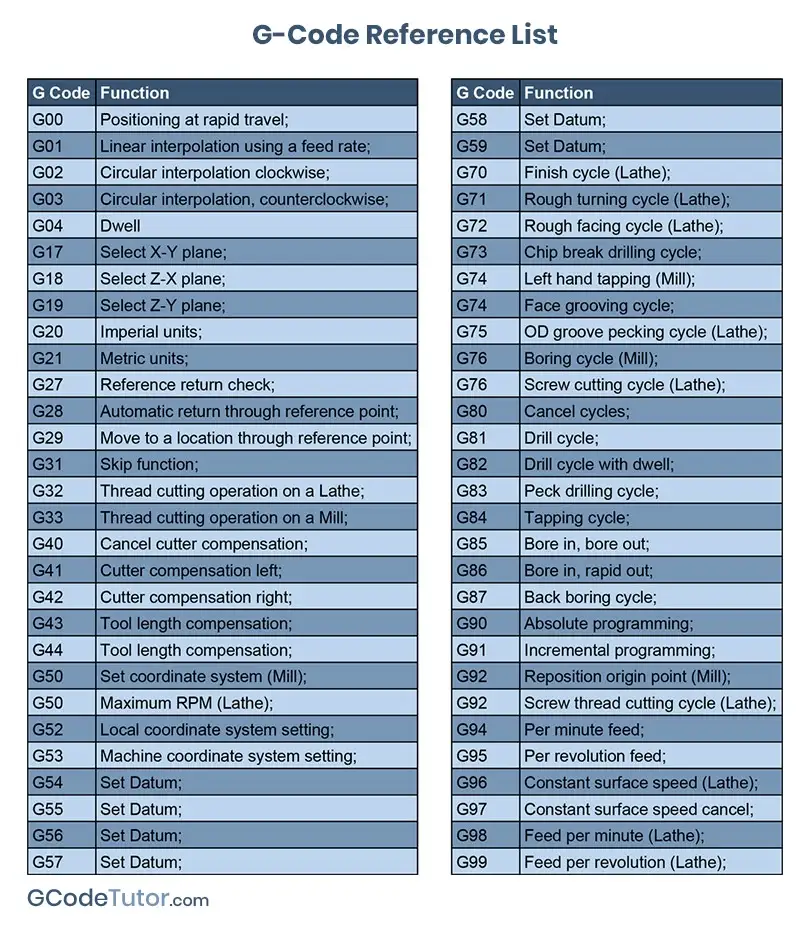Aqui estão alguns comandos G-code comuns que você verá na programação CNC: