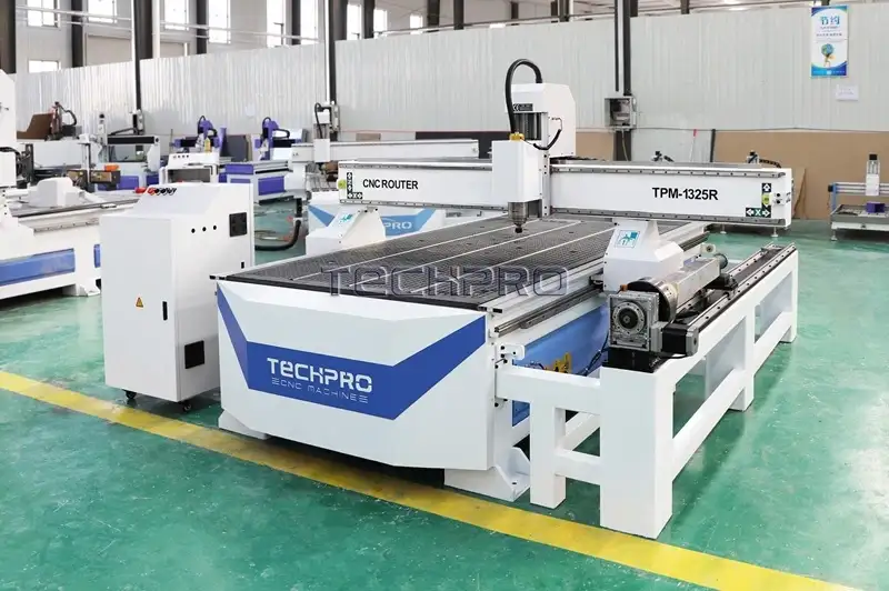 da TechPro’s Furadeira CNC 1325 4×8 com 4 eixos é uma máquina de alto desempenho projetada para usinagem precisa em 3D e cilíndrica. Com uma mesa de 1300mm x 2500mm e construção robusta e resistente, a máquina suporta ligação de quatro eixos para usinagem eficiente em múltiplos ângulos. Ideal para produção personalizada, marcenaria e tarefas de alta precisão.